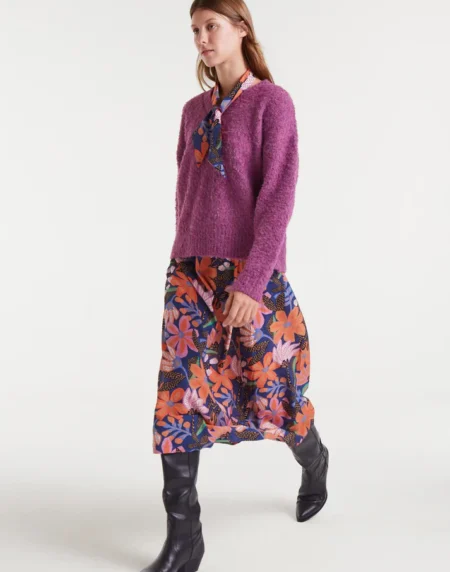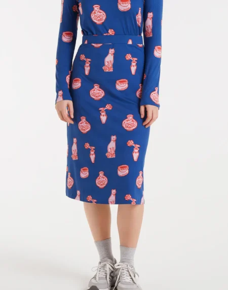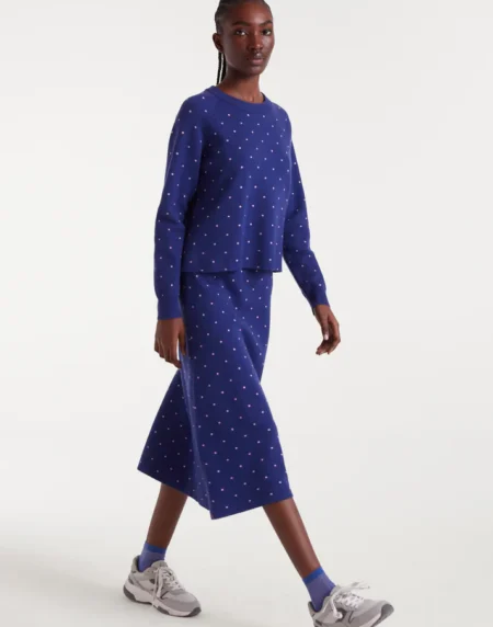 FALDA MIDI PUNTO TOPOS MARINO Y ROSA