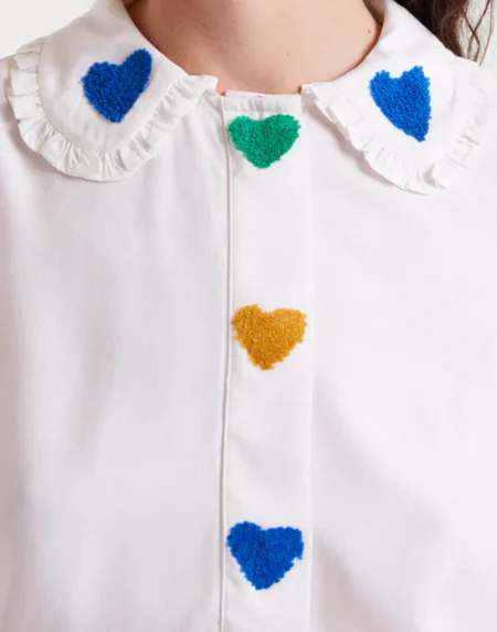 CAMISA BLANCA CON BORDADO DE CORAZONES
