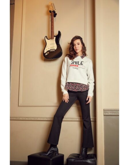 Camisa fluida ideal conjuntada con la sudadera Sedna