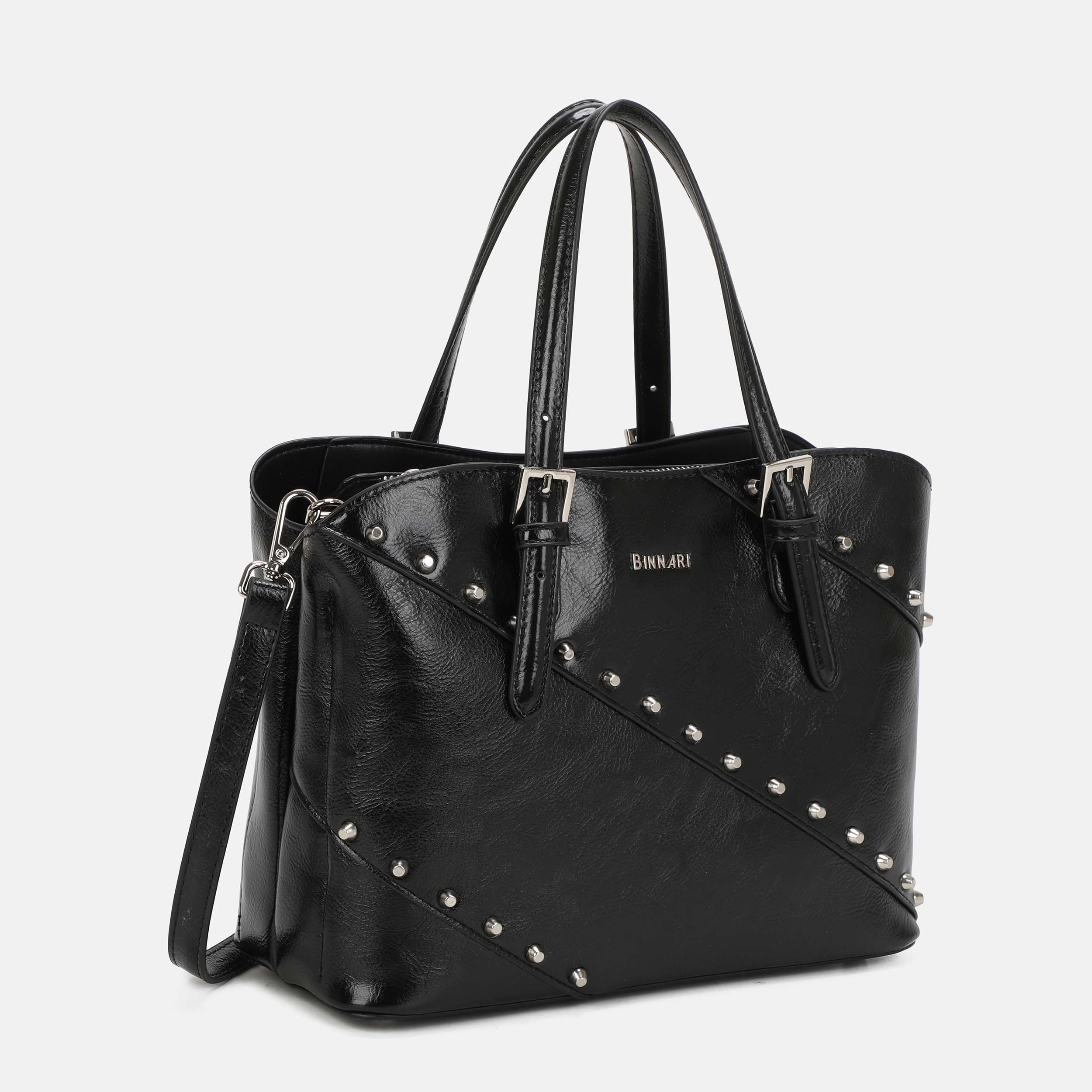 Está confeccionando en pu de alta calidad, tiene unas tachas decorativas en la parte delantera en color nickel .