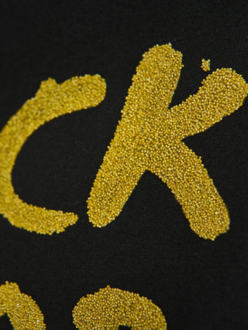 Camiseta de la marca Aire Retro, cami básica de algodón relaxed fit con estampado e incrustaciones de bolitas tipo caviar en oro!