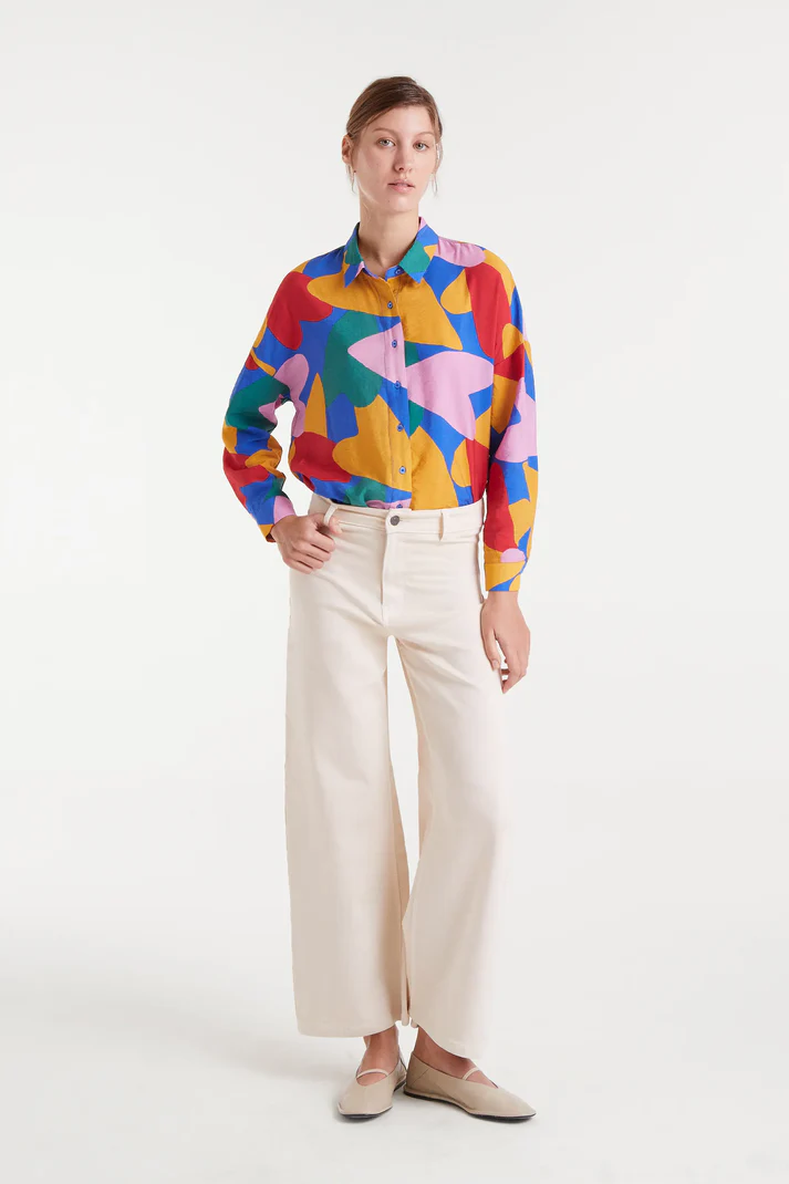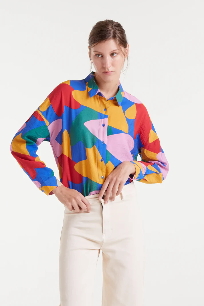 Camisa de la marca Compañía Fantástica, tejido crepé ligero con estampado Ponziana. Cuello solapa con manga larga y puño con botón. Cierre frontal con botones.