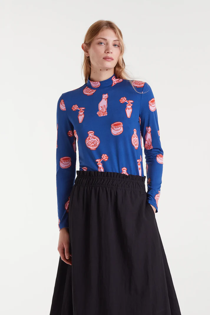 Camiseta de la marca Compañía Fantástica, con estampado Porcelain. Con cuello mock y manga larga.