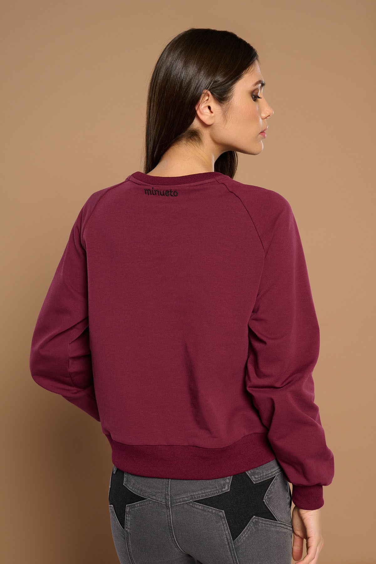 Sudadera de la marca Minueto, tejido de algodón con cuello redondo y manga largo. Cuello, puños y cintura en rib. Bordado de ojo en frontal. Detalle de tachuelas en hombros.