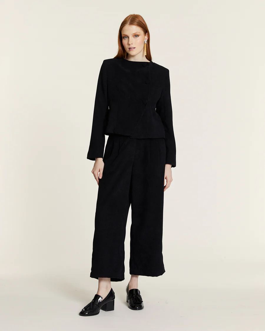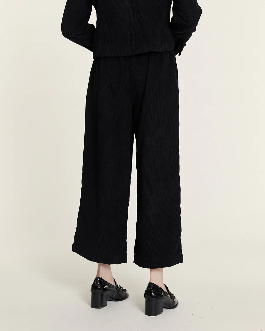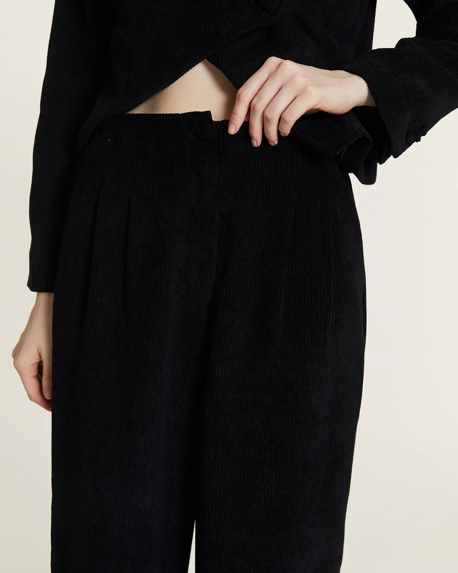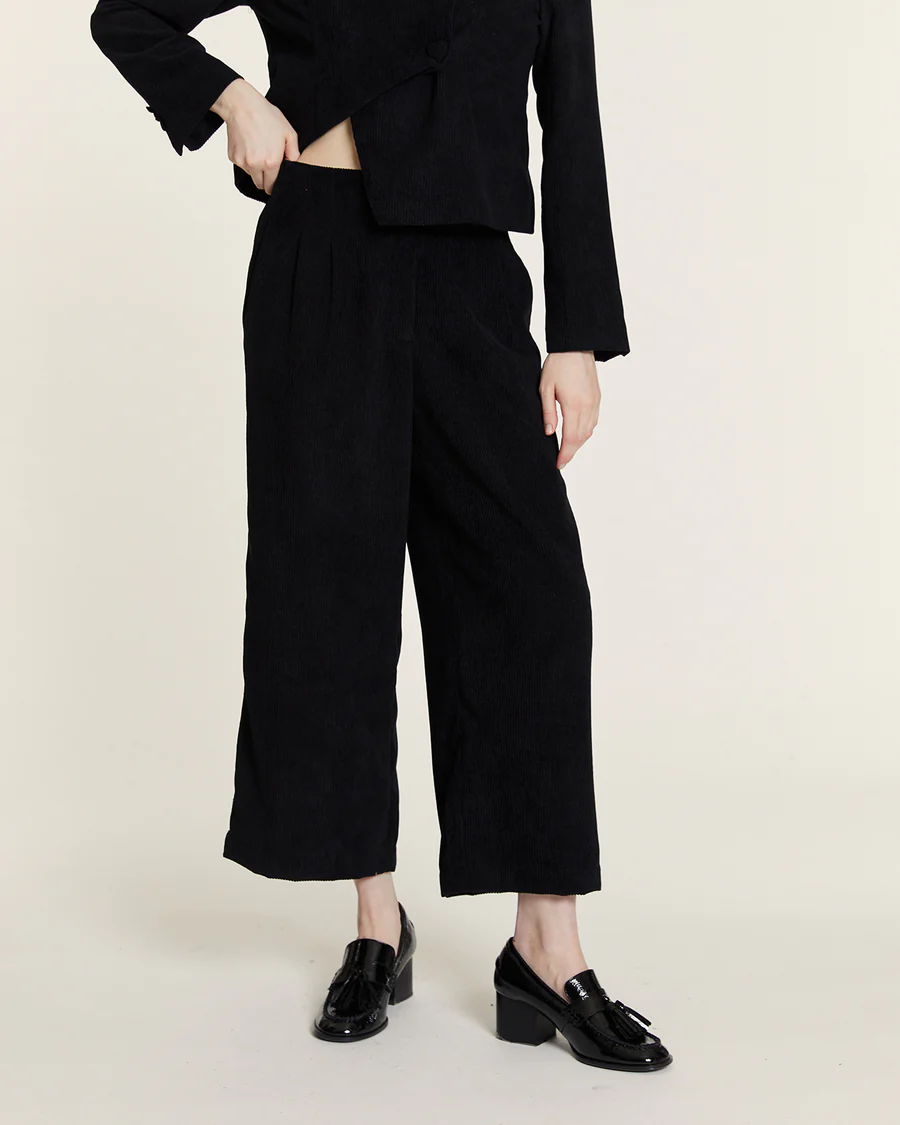 Culote de la marca Pepaloves, de tiro alto con doble pinza en el delantero. Cinturilla rígida con cierre de botón en forma de corazón y cremallera.