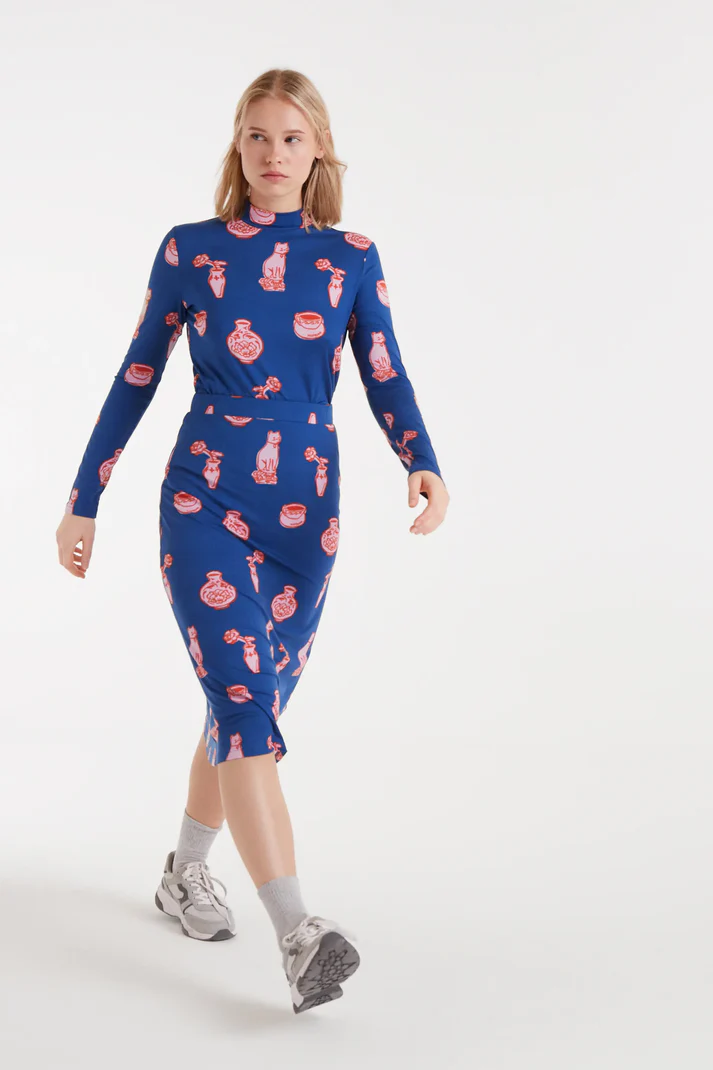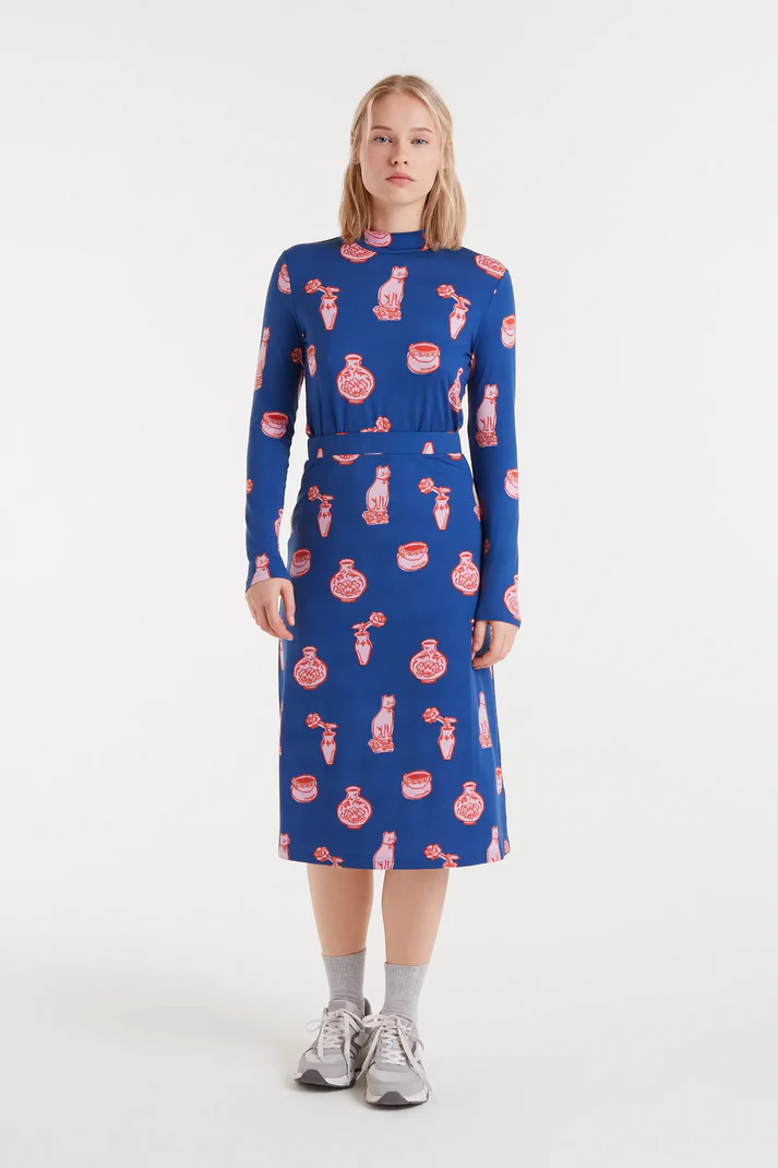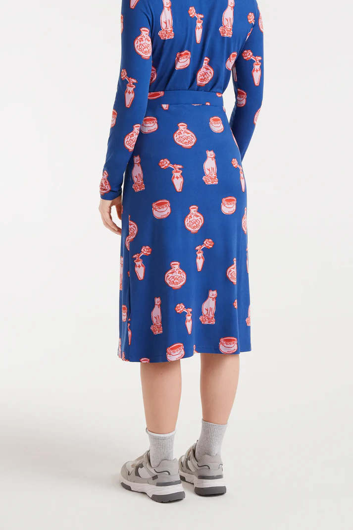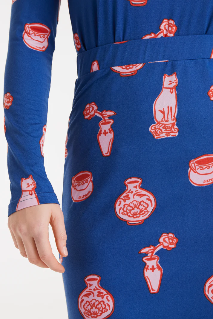 Falda midi de la marca Compañía Fantástica, con estampado Porcelain. Con cintura elástica interna completa de tiro medio.