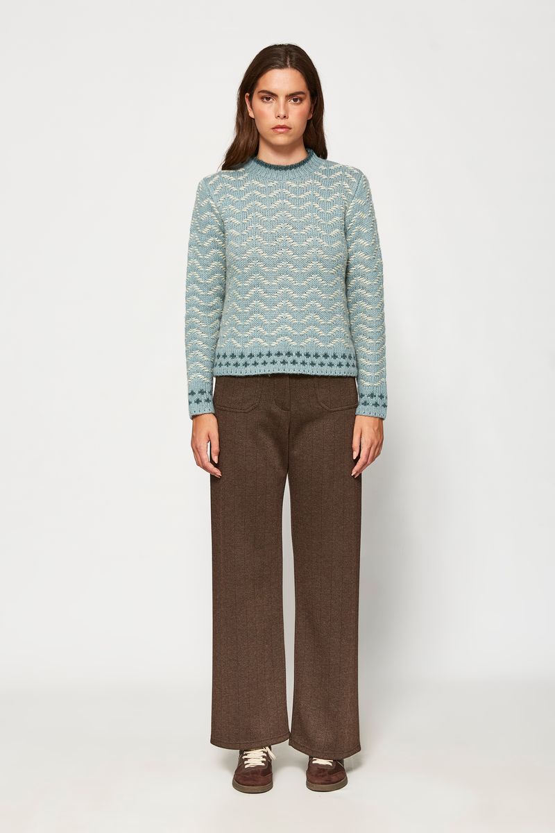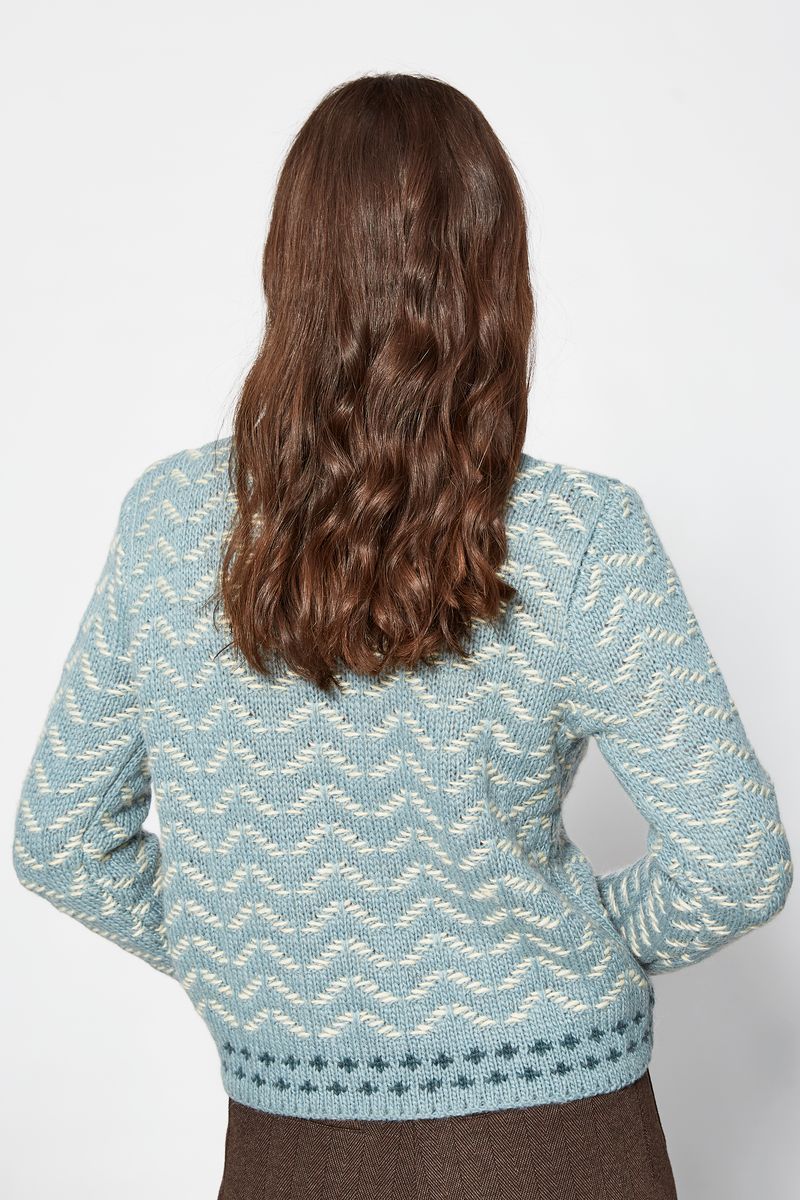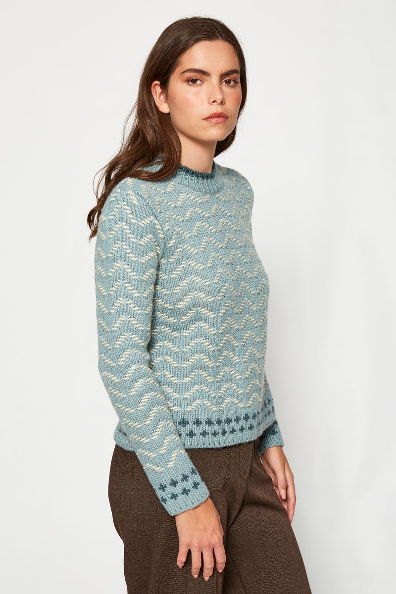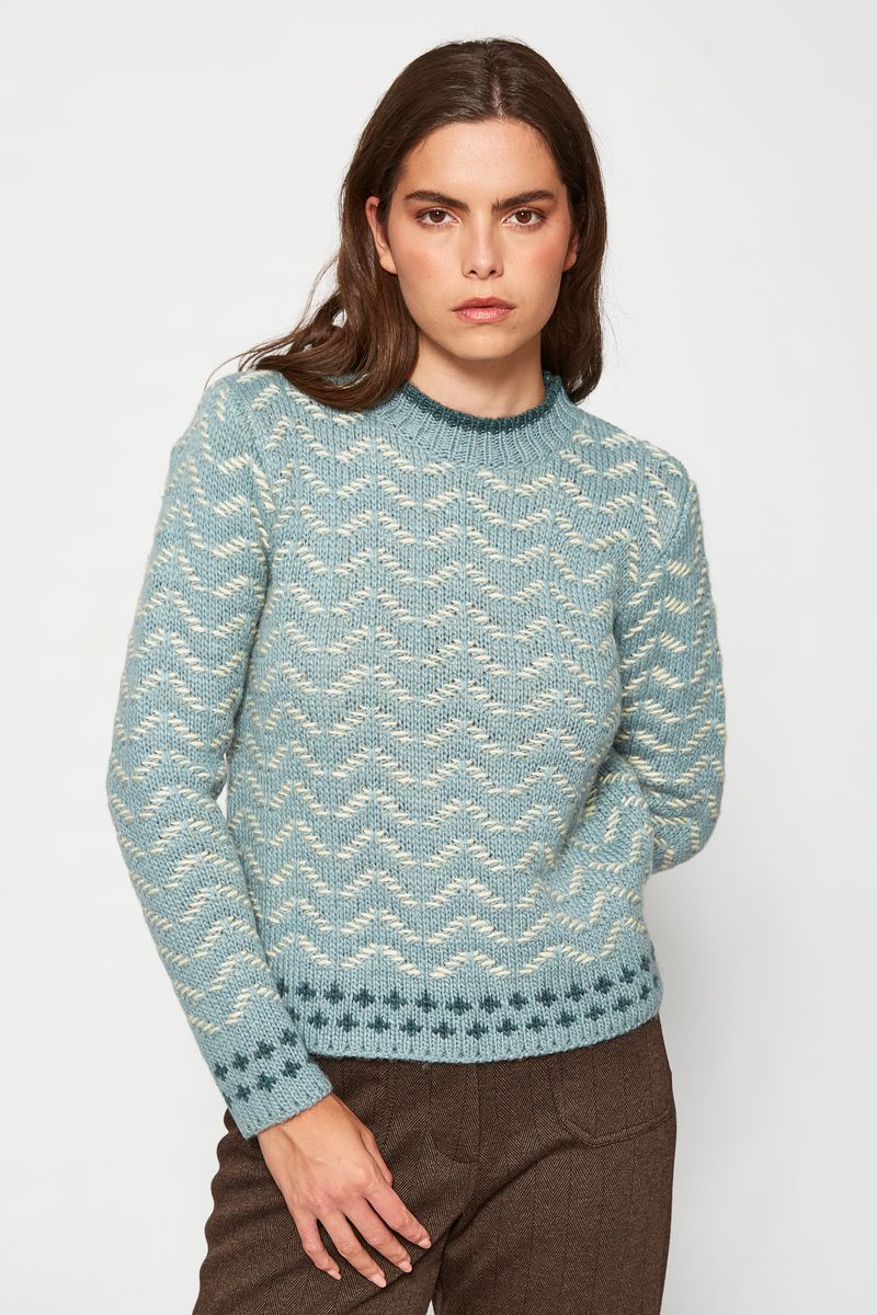 Jersey de la marca MdM, con estampado de zigzag en color azul y beige.