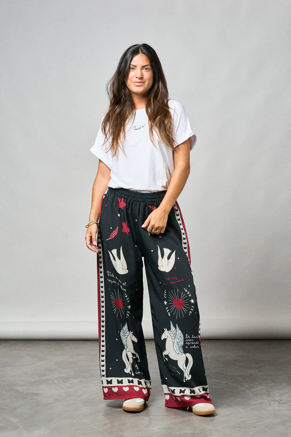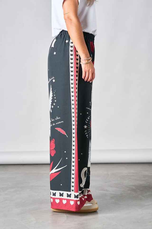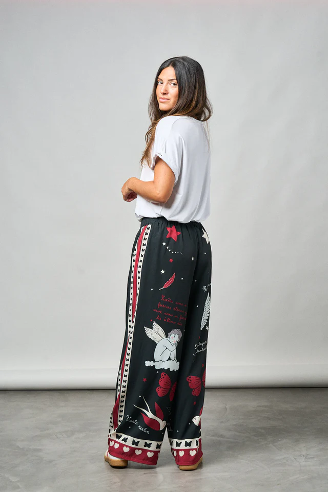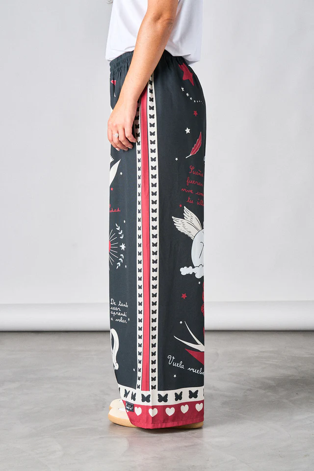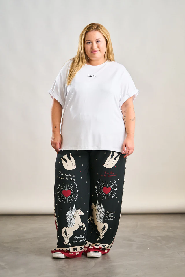 -Pantalón largo de tiro medio con cinturilla elástica.