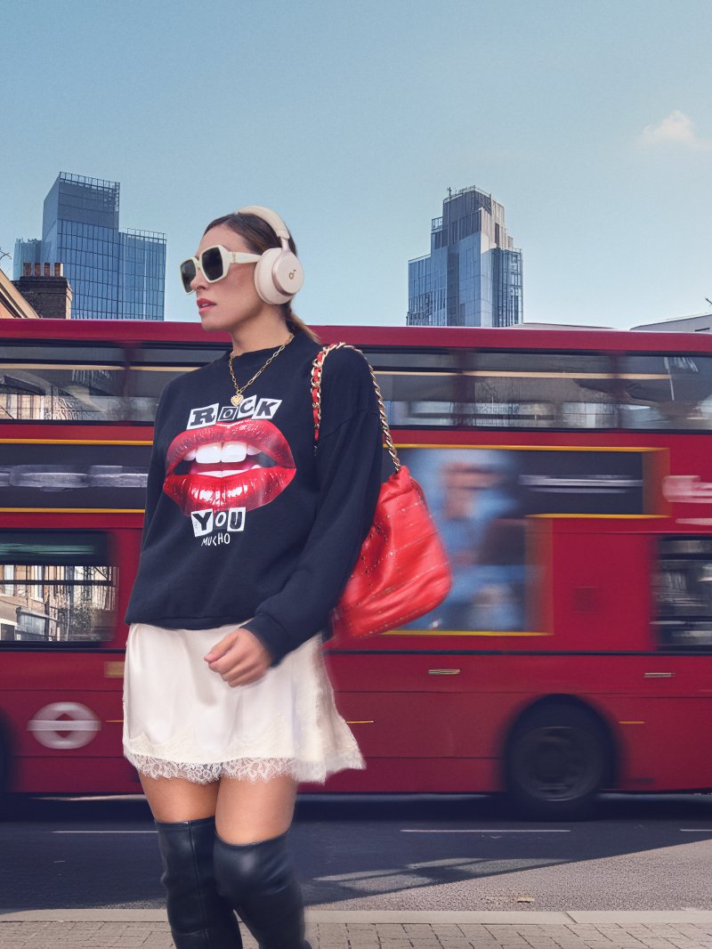 Comprar yaSudadera de la marca Aire Retro, de corte oversize con estampado a todo color en el pecho su composición es 100% algodón.